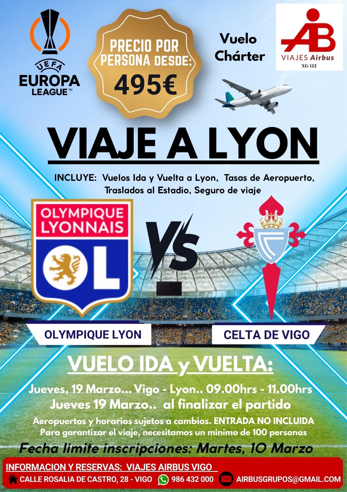 Viaja a Lyon para disfrutar del encuentro de UEFA Europa League entre Olympique Lyonnais y RC Celta de Vigo.
